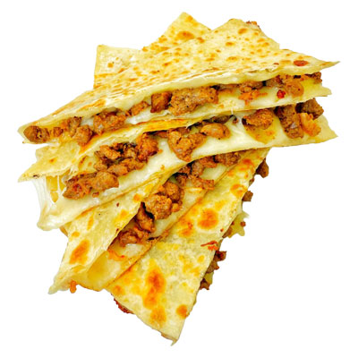 A large flour tortilla filled with melted cheese and savory birria seasoned beef. Includes sides of cilantro, onions, salsa and lime wedges.